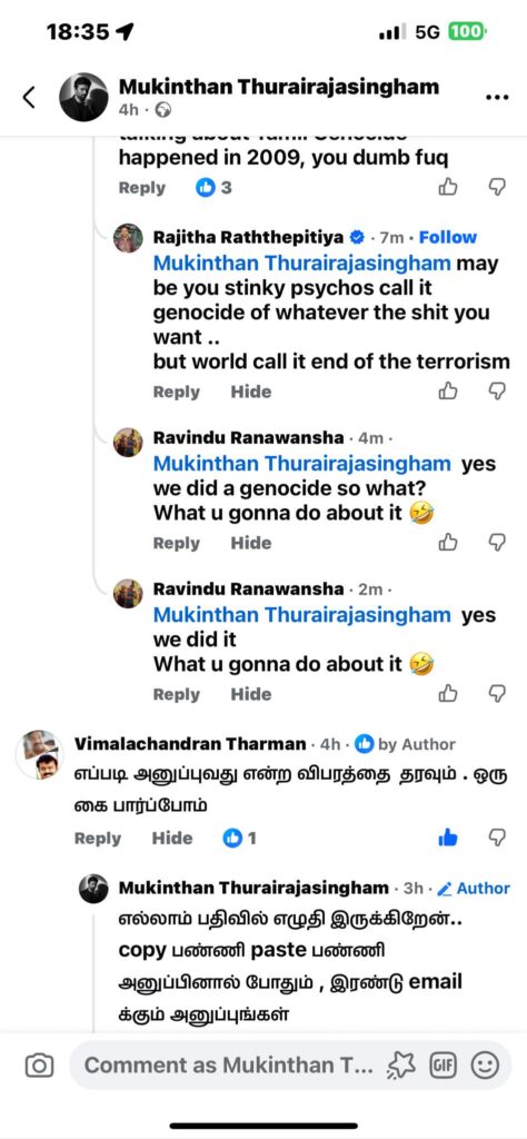 2009ல் தமிழர்களை சிங்கள இனவெறியர்கள் இனப்படுகொலை செய்தது போல மீண்டும் ஒருமுறை தமிழர்களை இரண்டாவது தடவையாக இனப்படுகொலை செய்யப்போகிறாராம் என பகிரங்கமாக மிரட்டல் விடுகிறார் இந்த சிங்கள தம்பி…Ravindu Ranawansha